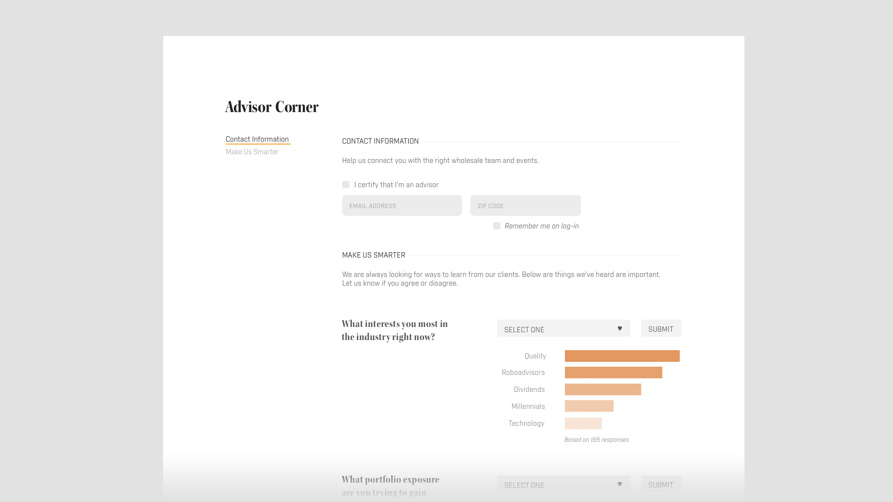 The focus was on understanding the perspective, needs, and sensibilities of financial advisors (the primary purchasers and consumers of product information) and crafting an experience around this perspective. We spoke with a diverse range of advisors and synthesized their thoughts into a set of design principles to guide the work in developing this new look.