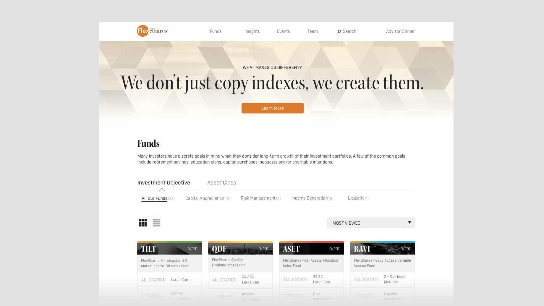 The Lab (Northern Trust's Client & Partner Experience studio) engaged in the Human Centered Design process–researching in the field with users and clients–to rethink the experience of advisors and customers of the FlexShares ETF products.