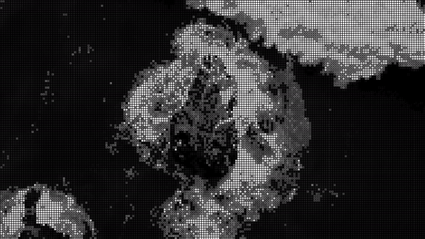 The conceptual themes informed the production process itself. I began with fairly abstract, but evocative source footage of life, nature, flow occurring at different levels of scale and then fed this imagery through some software tools I wrote which pixelated, subdivided, and symbolically replaced values to create something with the impression of the underlying imagery. It became the machine's perspective in a sense.