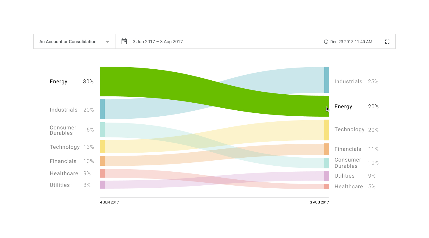 In the process of exploring the many different visual expressions of financial data we established several guiding principles and ideas: