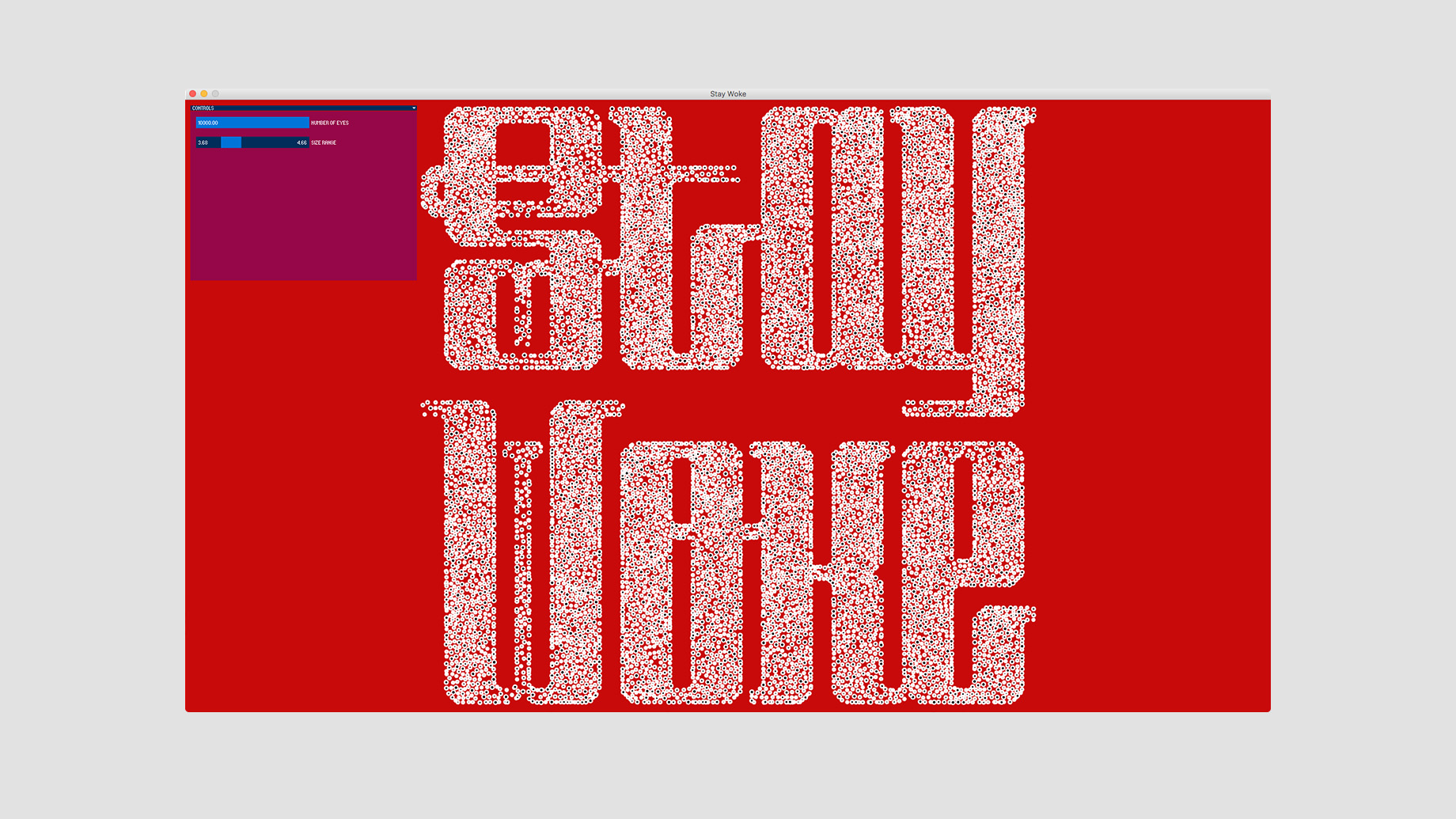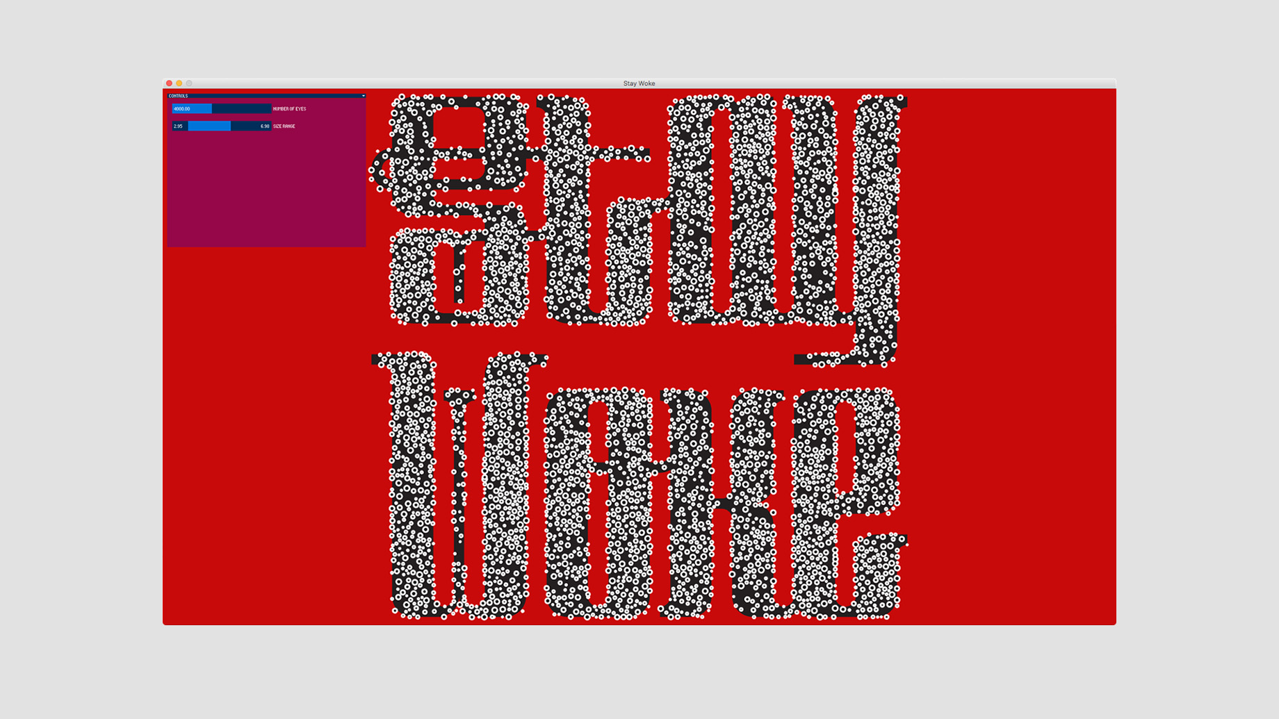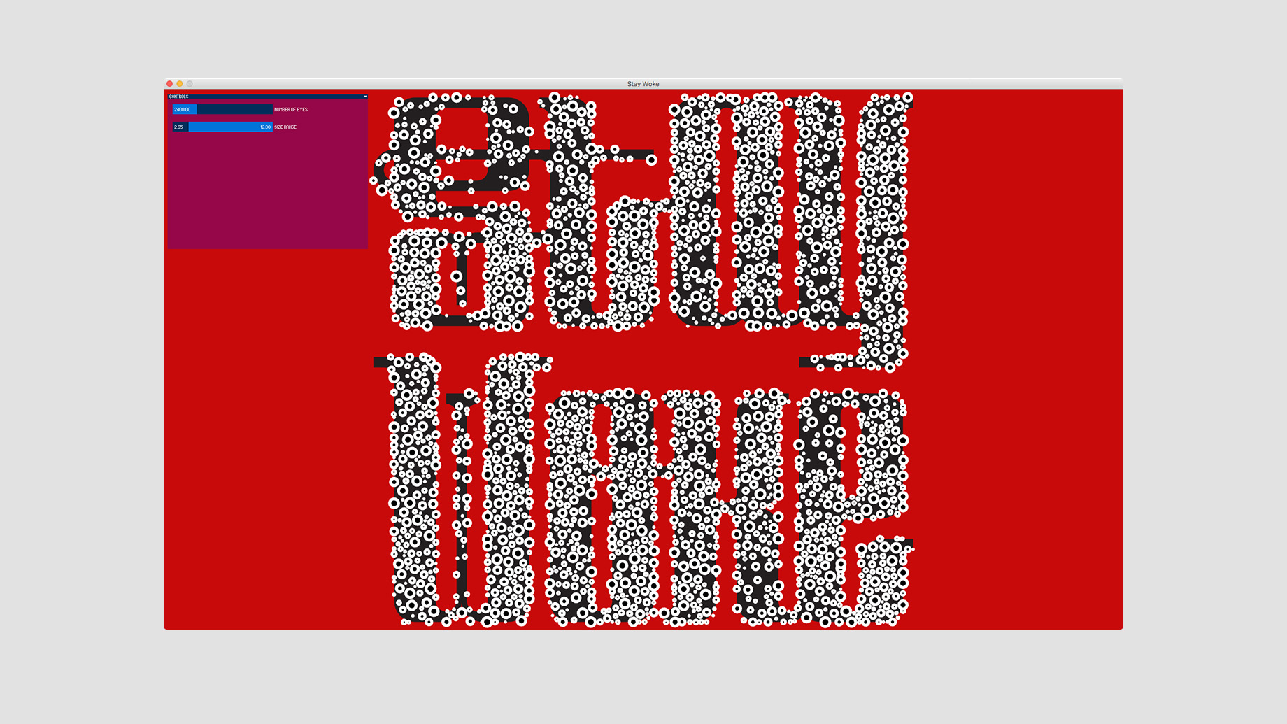 I collaborated with J.P. Ramirez to help him translate his Stay Woke project into print. The project began as an installation featuring a large, custom typography piece filled with googly eyes. Placing the eyes on the original piece was a tedious and laborious process (J.P.'s a bit of a glutton for punishment when it comes to installations like that) so we resolved to find a better way in the transition to a new medium.
