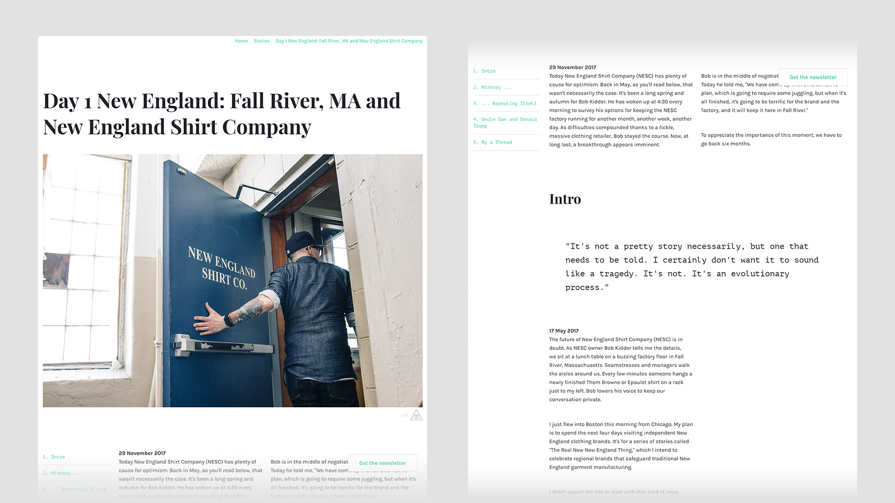 To this end the design and aesthetic seek to place the content at the fore and eschew armature and artifice where possible. Designed without feeling design-y. It was, however important to us that the layout of content for individual stories have the flexibility to break out of the typical wall of text with an occasional photo that has become such the hallmark of articles online (cough Medium cough). I created a robust admin dashboard experience the provides a great deal of editorial layout control with regards to splitting out content into columns and providing various formatting controls.